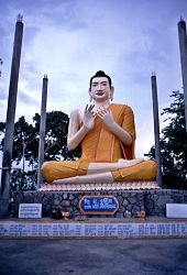 ここはぜひ行きたかった所。ワット・バナン見学が終わったのが4時半頃だったので、もう帰ろうと思っていたら、キリング・ケイブは近いから行こうという。翌日また同じ方向に行くのもばからしいが、時間が少ない。でも思い切って行くことにした。約30分かかって到着。カンボジアには珍しく、断崖絶壁の景色。この断崖を登っていかなくてはならないので、ふもとの村でガイドを雇う必要がある。ガイドといっても子供である。バイクタクシーが着くと子供達がわっと集まってきてガイドに名乗りをあげる。喧嘩になるといけないので、そこはバイクの運転手がうまくさばいてくれた。