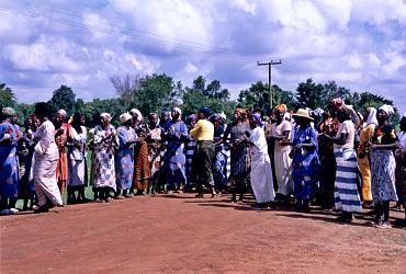 | セレモニーの垂れ幕 | アナン氏を待ち受ける村の女性達 |