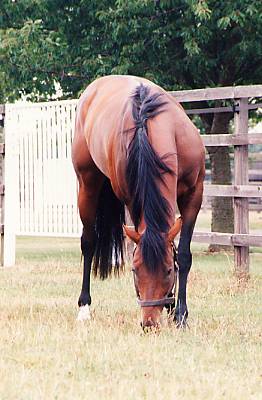 | I visited here in August 1994 and 1995. The National Stud is next to Newmarket Racecourse. It is open to the public, visiters are taken onto the Stud by coach and conducted on a tour of stallions, stallion unit, foaling unit,nursery yard and mares and foals. |