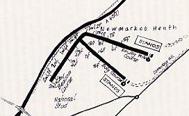 ![]() | ニューマーケット競馬場の地図。 上がローリーマイル、下がジュライコース。 最長で3600mのレースができる。 |