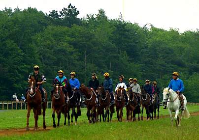 調教を終え、引き上げてくる馬達。凄い数の馬がいる。