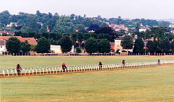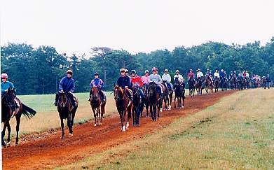 | 丘陵の雄大な調教場。朝いけば、ここは馬だらけである。厩舎からは馬に乗ってここまでくる。だから道路にも馬がいっぱい歩いている。 |